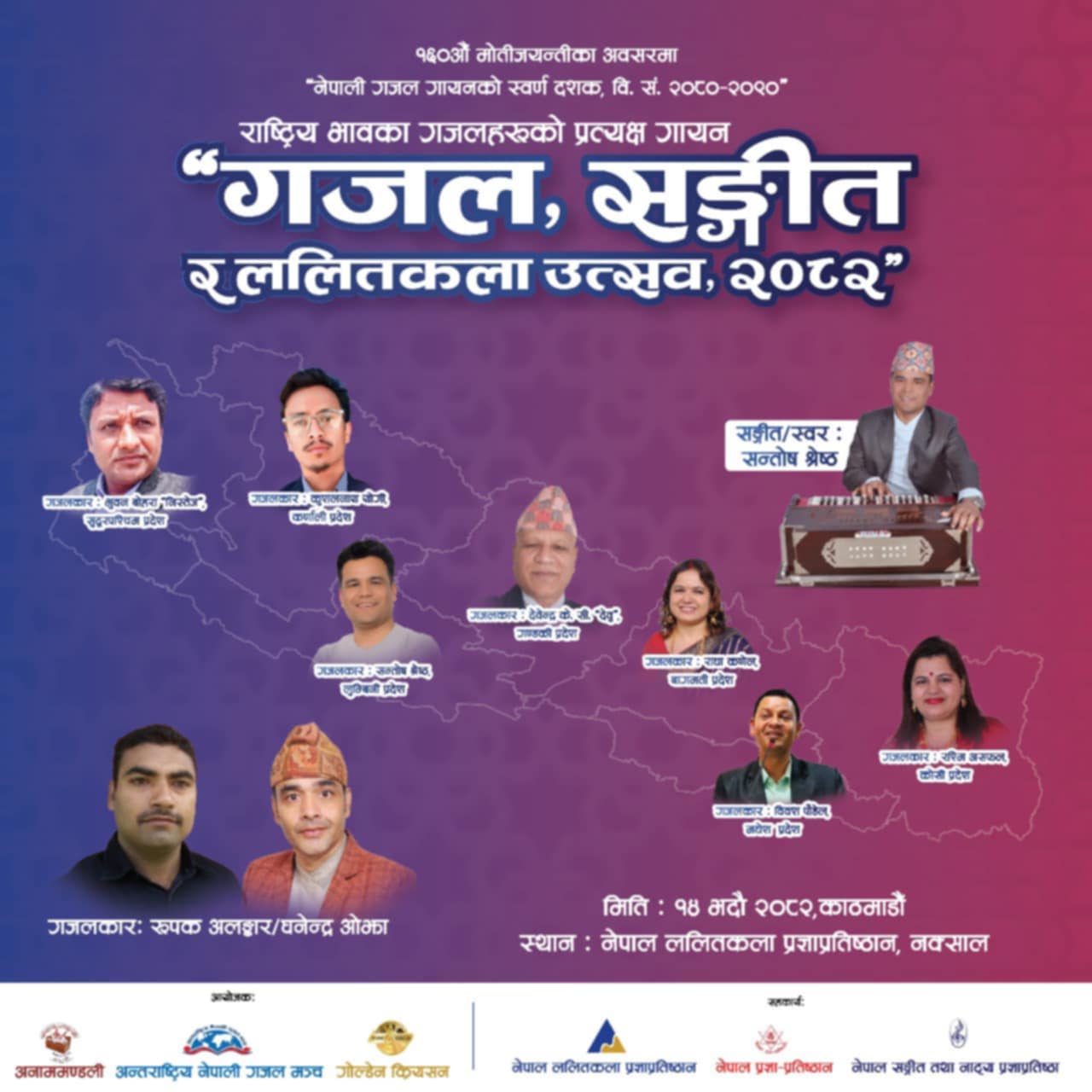 १४ भदौ २०८२ शनिबार दिउँसो १ बजे गजलको विकास, विस्तार र परिष्कारमा सक्रिय संस्थाहरू अनाममण्डली र अन्तर्राष्ट्रिय नेपाली गजल मञ्च तथा नेपाली सङ्गीत प्रवर्द्धनमा क्रियाशील गोल्डेन क्रियसनको आयोजनामा उक्त उत्सव हुने बताइएको छ ।