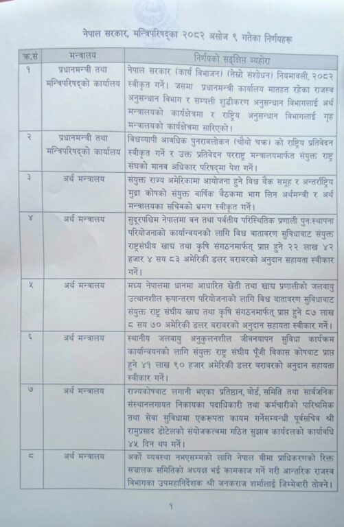 यस्ता छन् मन्त्रिपरिषद्का निर्णयहरुः