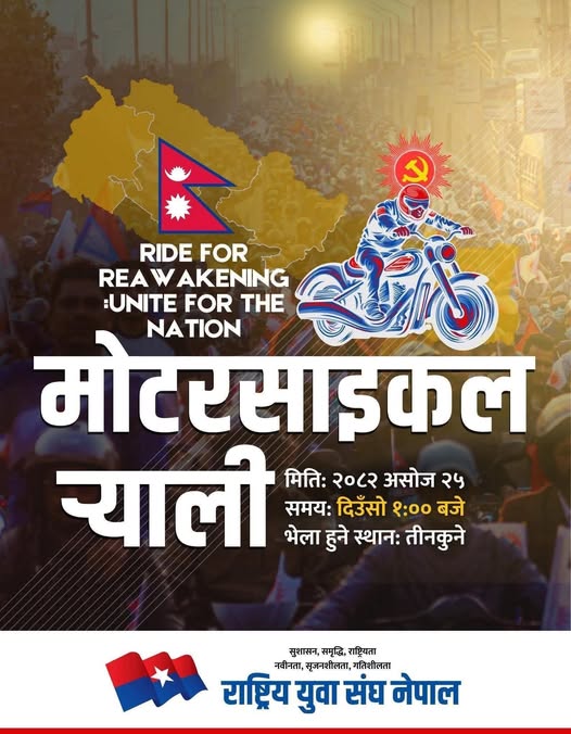 युवा संघले शनिबार काठमाडौंमा मोटरसाइकल र्‍यालीको आयोजना गर्ने घोषणा गरेको थियो । तर काठमाडौंका प्रमुख जिल्ला अधिकारी ईश्वरराज पौडेलले कुनै पनि समूह वा संगठनलाई र्‍याली, जुलुश र सभा जस्ता कार्यक्रम गर्न अनुमति नदिइएको जनाएका हुन् ।