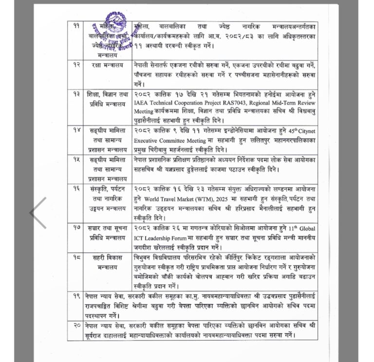 यी हुन् मन्त्रिपरिषद्ले गरेका २० निर्णयहरु