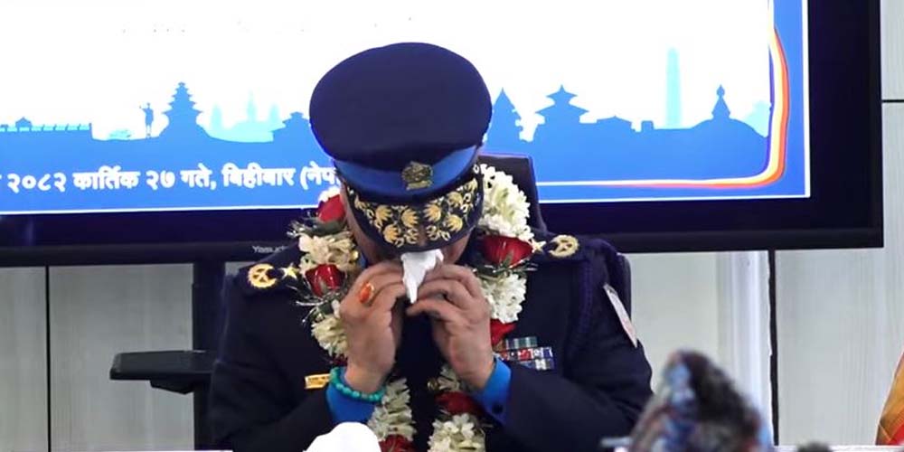 काठमाडौं । नेपाल प्रहरीका नवनियुक्त आइजीपी दानबहादुर कार्की द्ज्यानी चिन्ह लगाएपछि सम्बोधन गर्नेक्रममा भक्कानिएका छन् ।