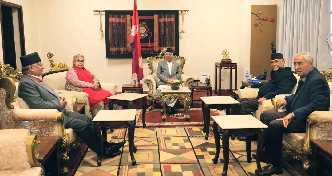काठमाडौं । राष्ट्रपति रामचन्द्र पाैडेलले प्रधानमन्त्री सुशीला कार्कीसहित तीन दलका शिर्ष नेतासँग छलफल गरेका छन् । नेकपा एमालेका अध्यक्ष केपी शर्मा ओली, नेपाली कम्युनिष्ट पार्टीका अध्यक्ष पुष्पकमल दाहाल( प्रचण्ड) र नेपाली कांग्रेसका सभापति शेरबहादुर देउवासँग भेट गरि छलफल गरेका हुन् ।