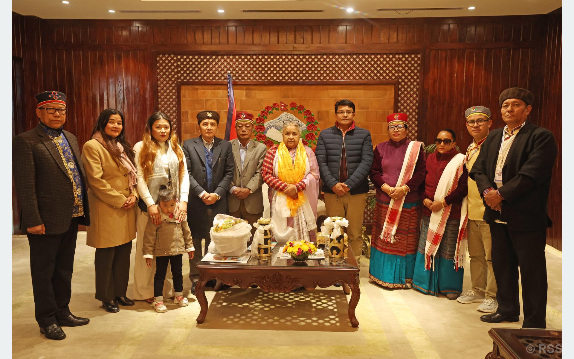 काठमाडौँ । प्रधानमन्त्री सुशीला कार्कीसँग नेपाल तामाङ घेदुङको प्रतिनिधिमण्डलले भेट गरेको छ । आज बिहान भएको भेटका क्रममा तामाङ समुदायको जनसङ्ख्या, संस्कृति, आर्थिक–सामाजिक अवस्थालगायत विषयमा चर्चा भएको प्रधानमन्त्रीका प्रेस सल्लाहकार रामबहादुर रावलले जानकारी दिए ।