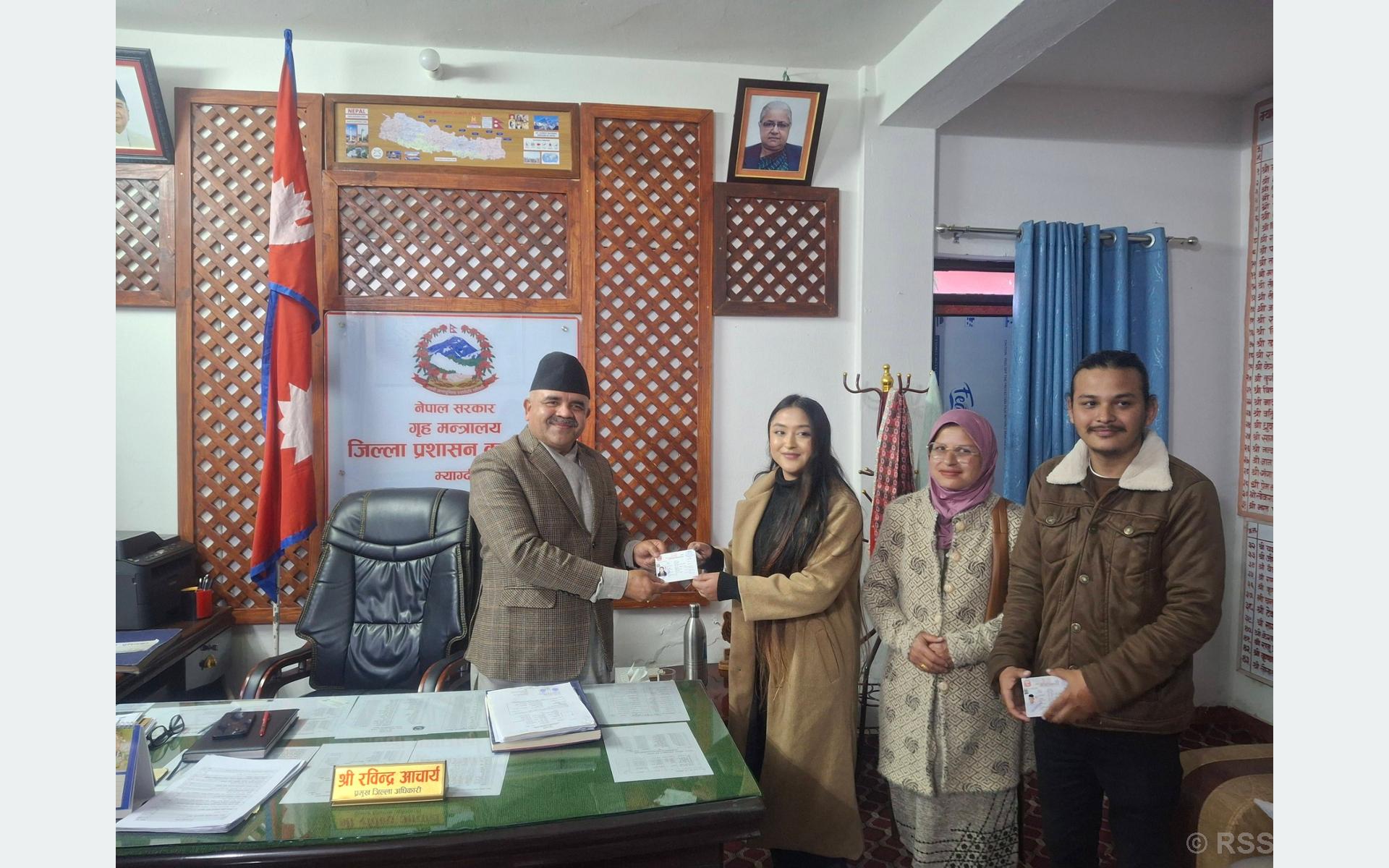 म्याग्दी । बेनी नगरपालिका–७ का समिर खान र यास्मिन बेगमले एक दशकको प्रतीक्षापछि आमाको नामबाट नागरिकता प्राप्त गरेका छन् ।