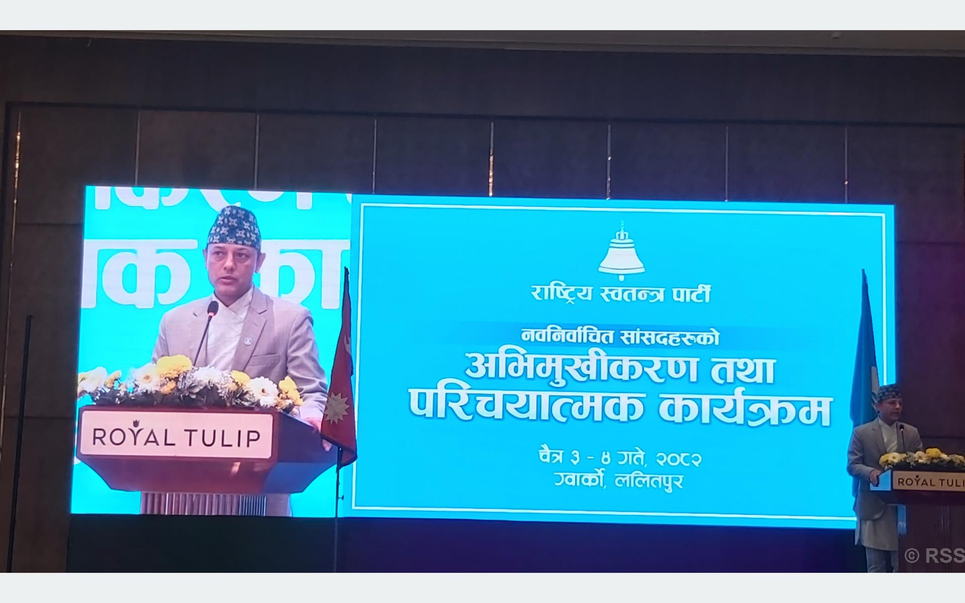 “नागरिकलाई महसुस हुने गरी काम गर्ने सरकार गठन गरेर भ्रष्टाचारको अन्त्य र सुशासन कायम गरेर देखाउनुपर्ने आवश्यकता छ, लामो समयदेखि देशको बागडोर सम्हालेका राजनीतिक दलले गरेको गलत क्रियाकलापले अहिलेको परिणाम आएको हो, यसले हाम्रो पार्टी र जननिर्वाचित प्रतिनिधिलाई जिम्मेवार र जवाफदेही बनाएको छ,” उनले भने ।