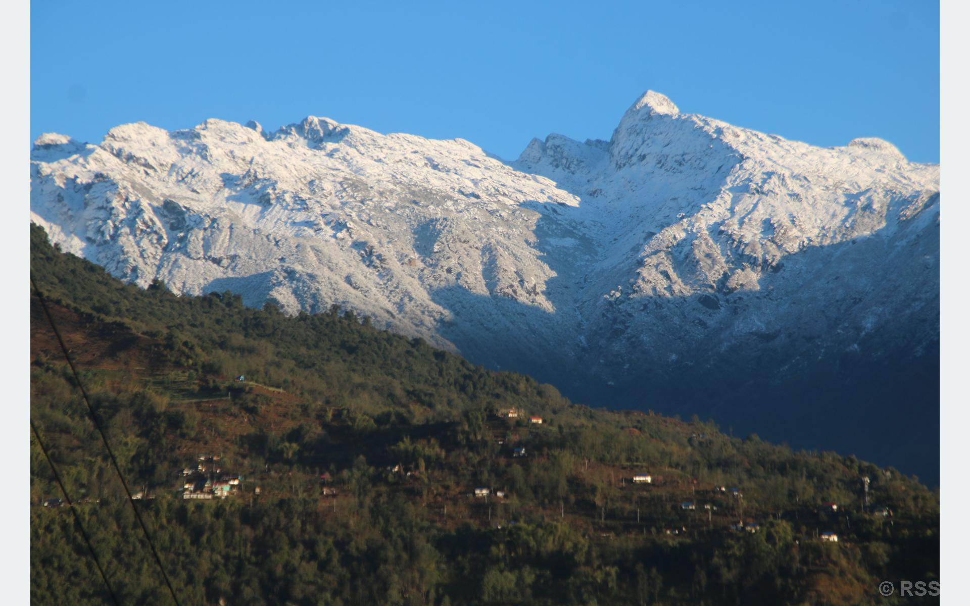 फुङ्लिङ । दुईदिन वर्षाभएपछि मौसम सफा हुँदा जिल्लाको डाँडाकाँडा चाँदीझैँ सेताम्मे देखिन थालेका छन् ।