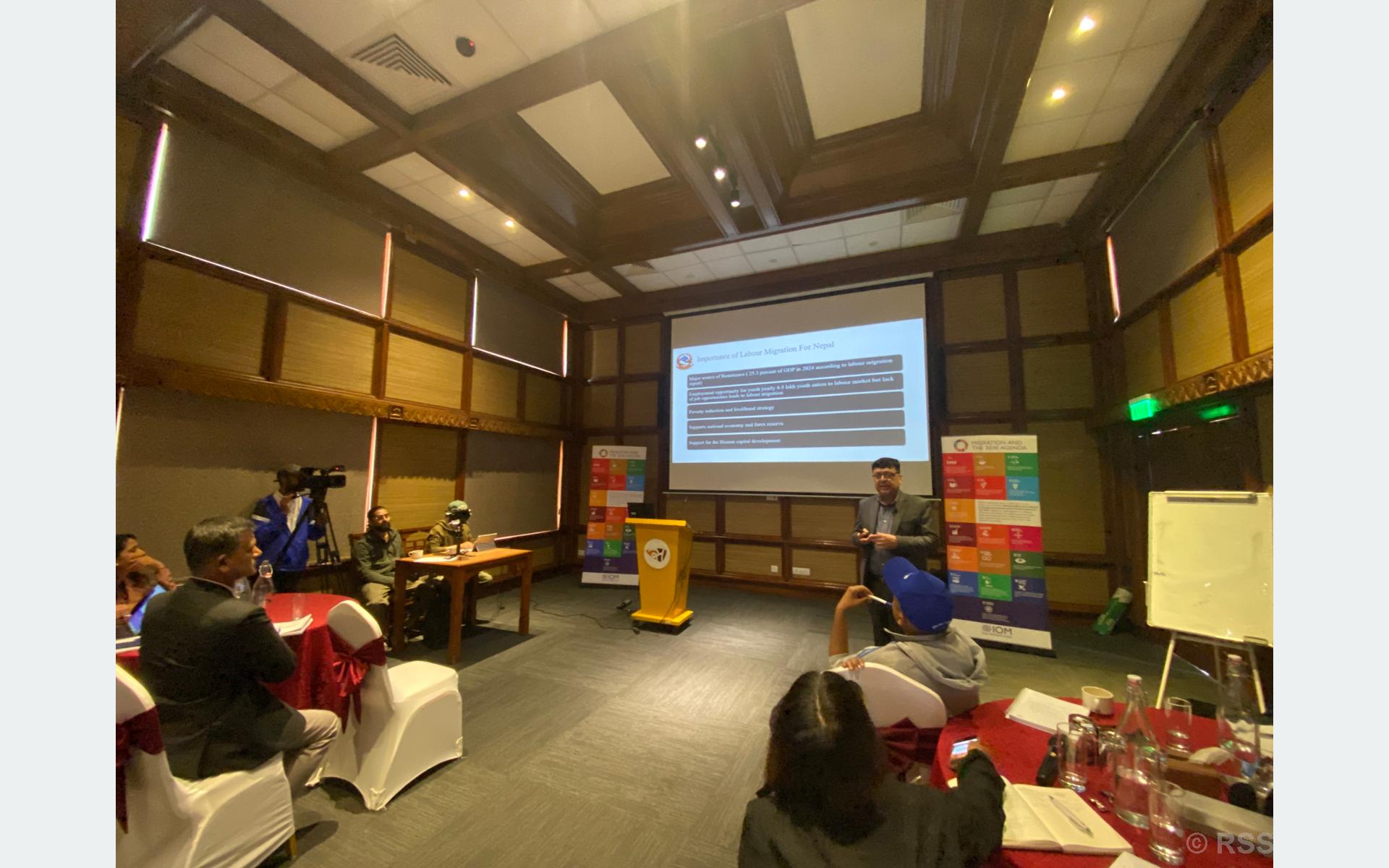 कार्यशालामा श्रम, रोजगार तथा सामाजिक सुरक्षा मन्त्रालयका सह–सचिव पिताम्बर घिमिरेले आप्रवासन नीति, कार्यान्वयन र चुनौतिबारे कार्यपत्र प्रस्तुत गरेका थिए । उनले नेपालमा वैदेशिक रोजगारले गर्दा आप्रवासन संस्कृति बढेको बताउँदै यसलाई सुरक्षित र मर्यादित बनाउन धेरै चुनौति थपिएको सुनाए ।