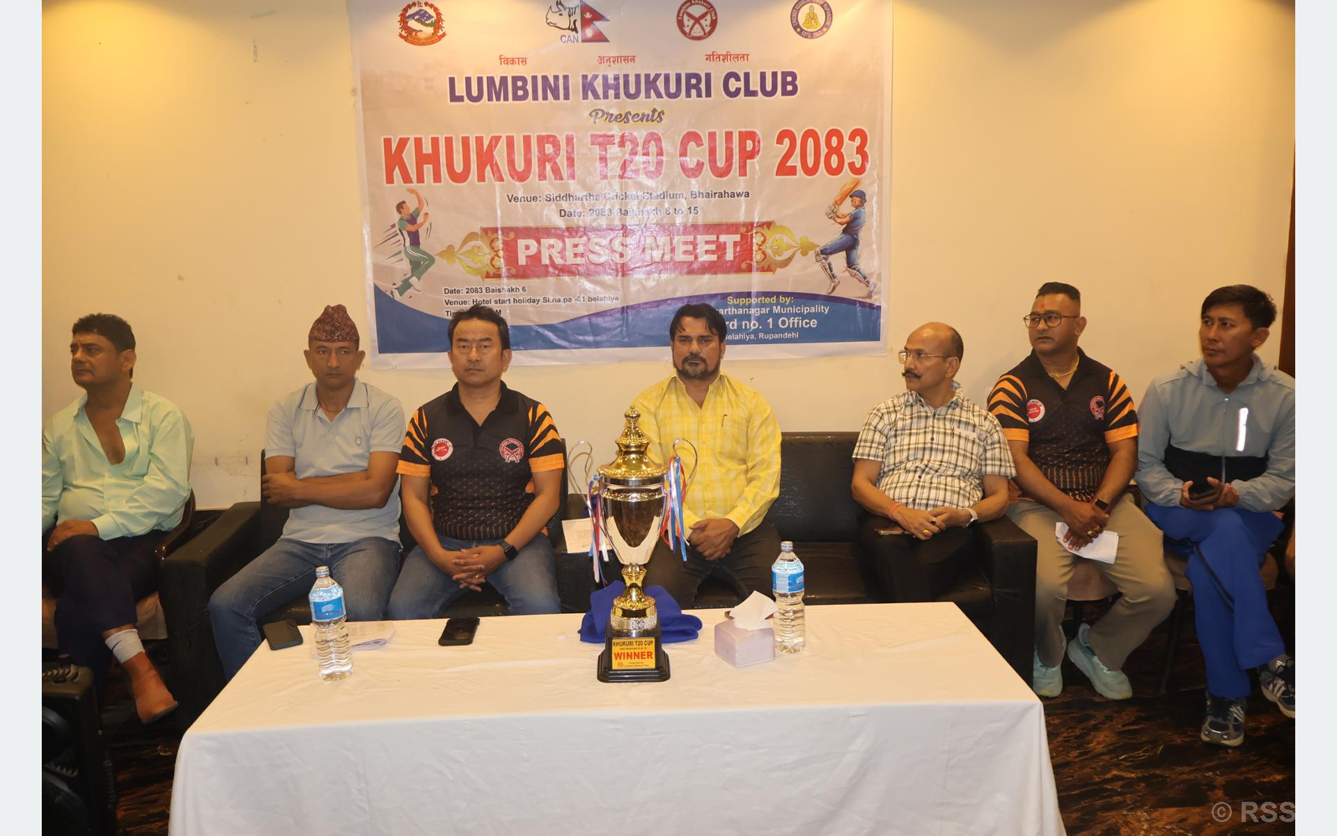 रुपन्देही । रुपन्देहीको भैरहवामा वैशाख ८ गतेदेखि खुकुरी टी-२० कप क्रिकेट प्रतियोगिता हुने भएको छ । लुम्बिनी खुकुरी क्लब बेलहियाको आयोजनामा सिद्धार्थनगर नगरपालिका-३ स्थित सिद्धार्थ क्रिकेट रङ्गशालामा प्रतियोगिता सञ्चालन हुनेछ ।