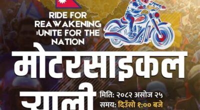 काठमाडौं । नेकपा एमाले सम्बद्ध युवा संघलाई मोटरसाइकल र्याली गर्नमा रोक लगाएको छ । सुरक्षा