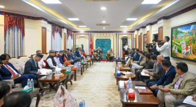 काठमाडौं । राष्ट्रपति रामचन्द्र पौडेलले बोलाएको सर्वदलीय बैठक केही बेरअघिबाट शीतलनिवासमा बैठक जारी छ।बैठकमा प्रधानमन्त्री