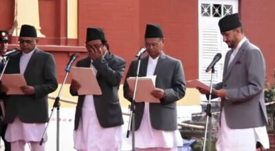 काठमाडौं । नवनियुक्त ४ मन्त्रीले शपथ लिएका छन् । आज शीतलनिवासमा आयोजित शपथ समारोहमा राष्ट्रपति